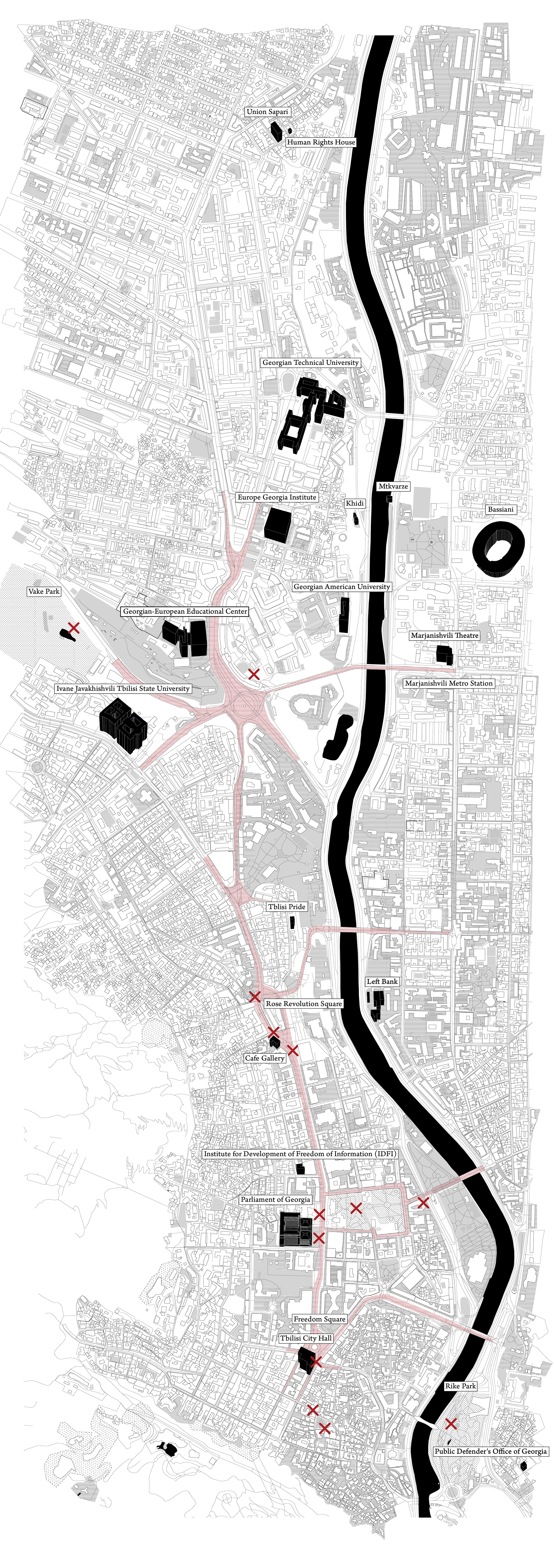 This project, Choreopolitics of Public Space, brings that same spirit to contemporary Tbilisi — a city whose public squares, avenues, and parks carry the weight of collective memory and civic unrest. By focusing on April 9 Park, a site deeply embedded in the trauma and resistance of Georgia’s political history, the design seeks to uncover how bodies in motion reclaim and re-script urban space. Protest here is not only political but spatial: people moving, gathering, dancing, dispersing.