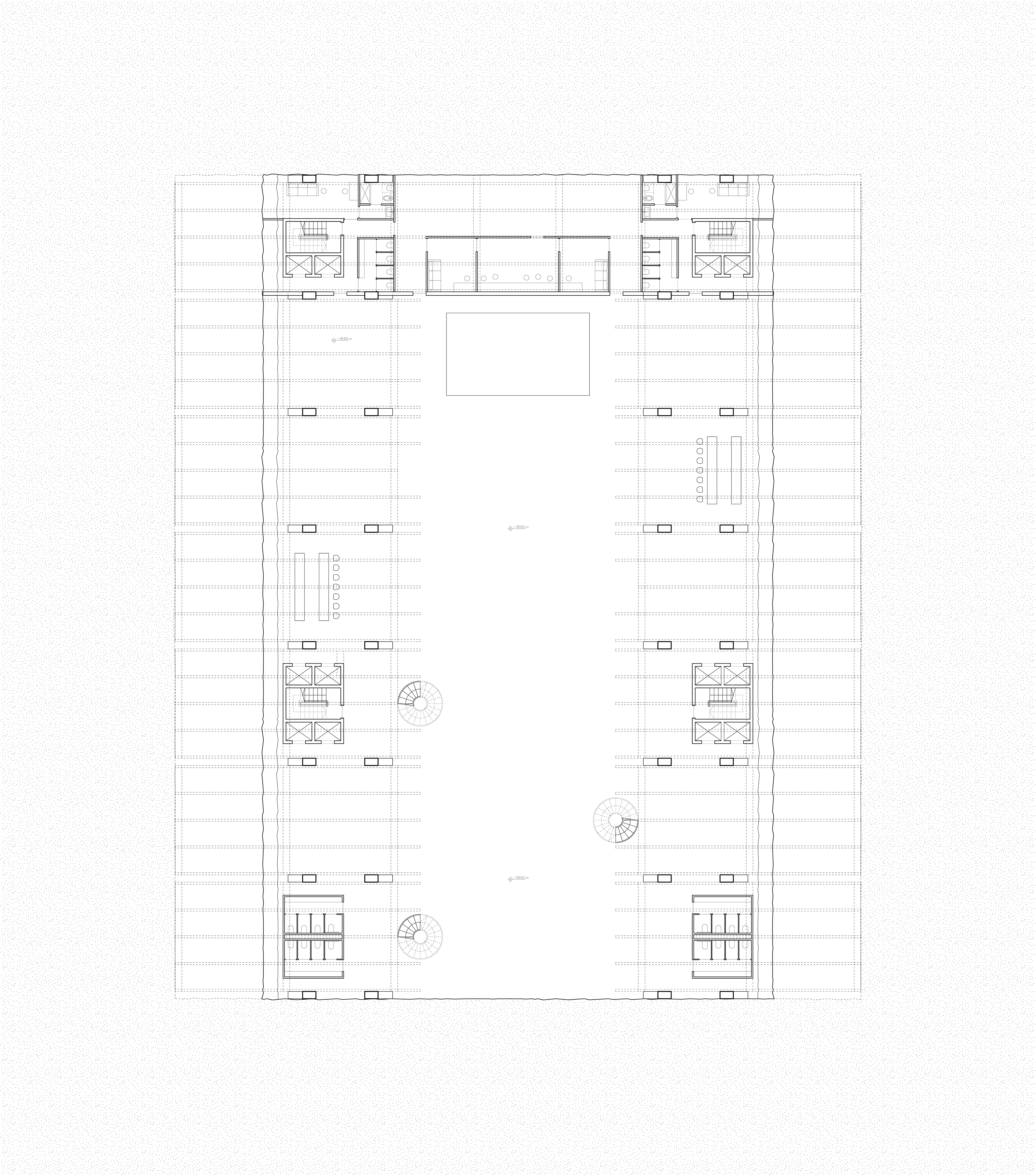 Image (Below-Left): Circulation cores are incorporated to facilitate vertical movement while simultaneously enhancing the structure’s lateral stability